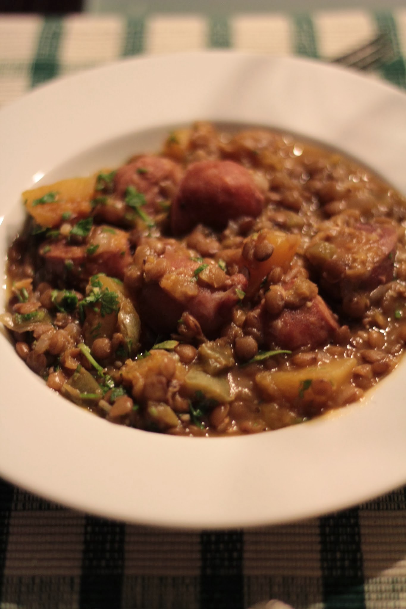 Adoro lentilhas mas teria de incluir outro tipo de salsichas (vegetarianas) mas é uma boa ideia. Beijinhos ao Zé Maria e pais.