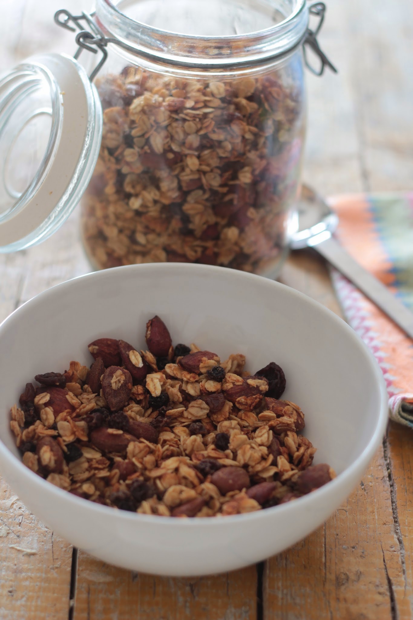 Cada vez gosto mais de fazer a minha própria granola ou muesli em casa. Gosto de poder escolher e usar os ingredientes. De saber a origem e a qualidade dos ingredientes que eu uso. De saber que tudo aquilo que eu estou a comer tem nomes que eu sei pronunciar e que efetivamente eu conheço. E cada vez tenho mais “aversão” a coisas processadas e industrializadas. Uns segundos a ler um rotulo de cereais de pequeno almoço, mesmo os ditos mais saudáveis, e é ver a quantidade louca de açúcar, gorduras pouco saudáveis e de pseudo nutrientes que aquilo contém. Na verdade só compro uma ou duas variedades de cereais de pequeno almoço que não troco por nenhuma outra – pesar do seu preço menos simpático – mas mesmo assim ocasionalmente. Mas o singelo pacote de aveia vem quase sempre para casa comigo.