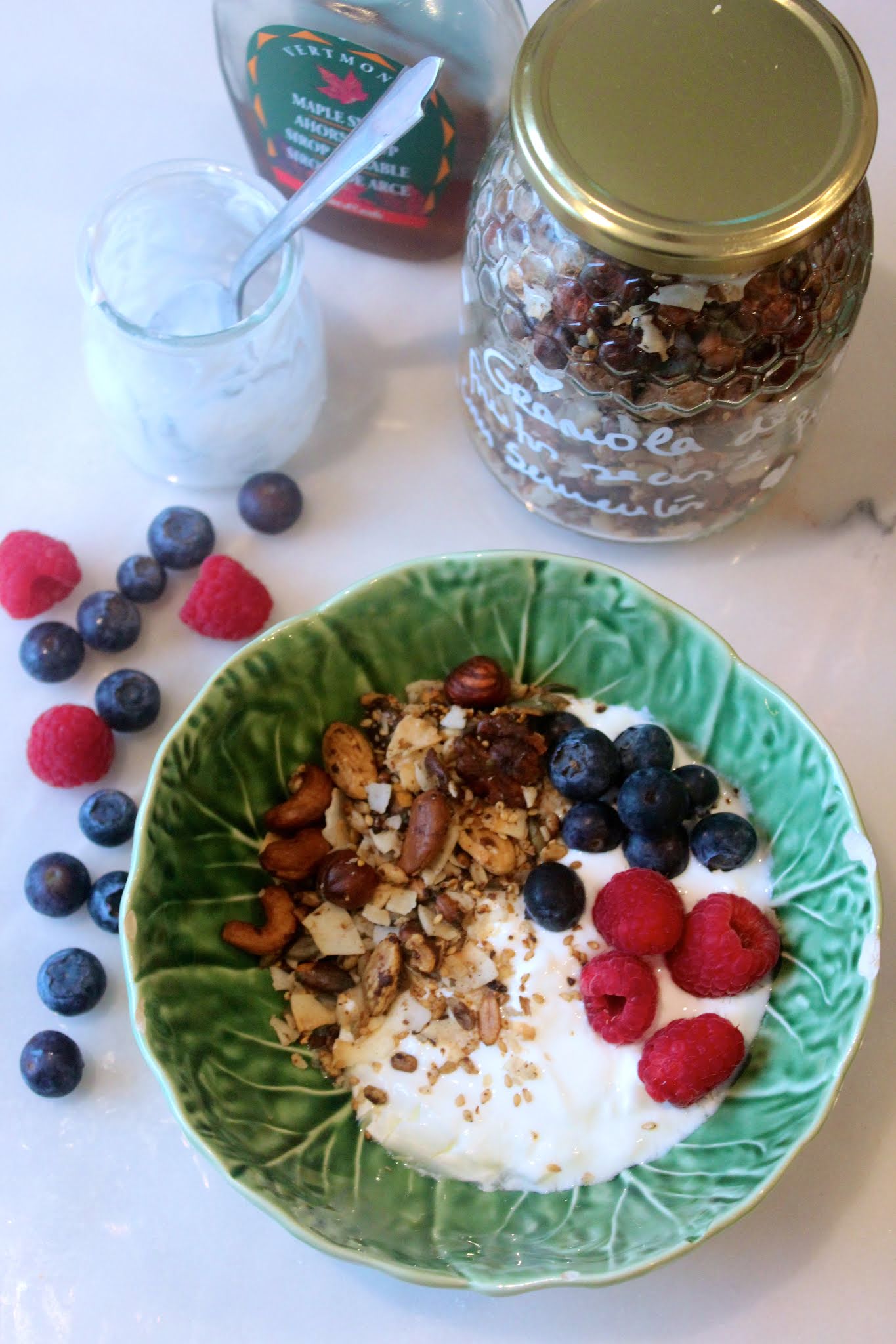 Aqui por casa a granola dura pouca porque os miúdos também gostam de polvilhar os iogurtes com ela, assim como de juntar os adorados mirtilos e framboesas….