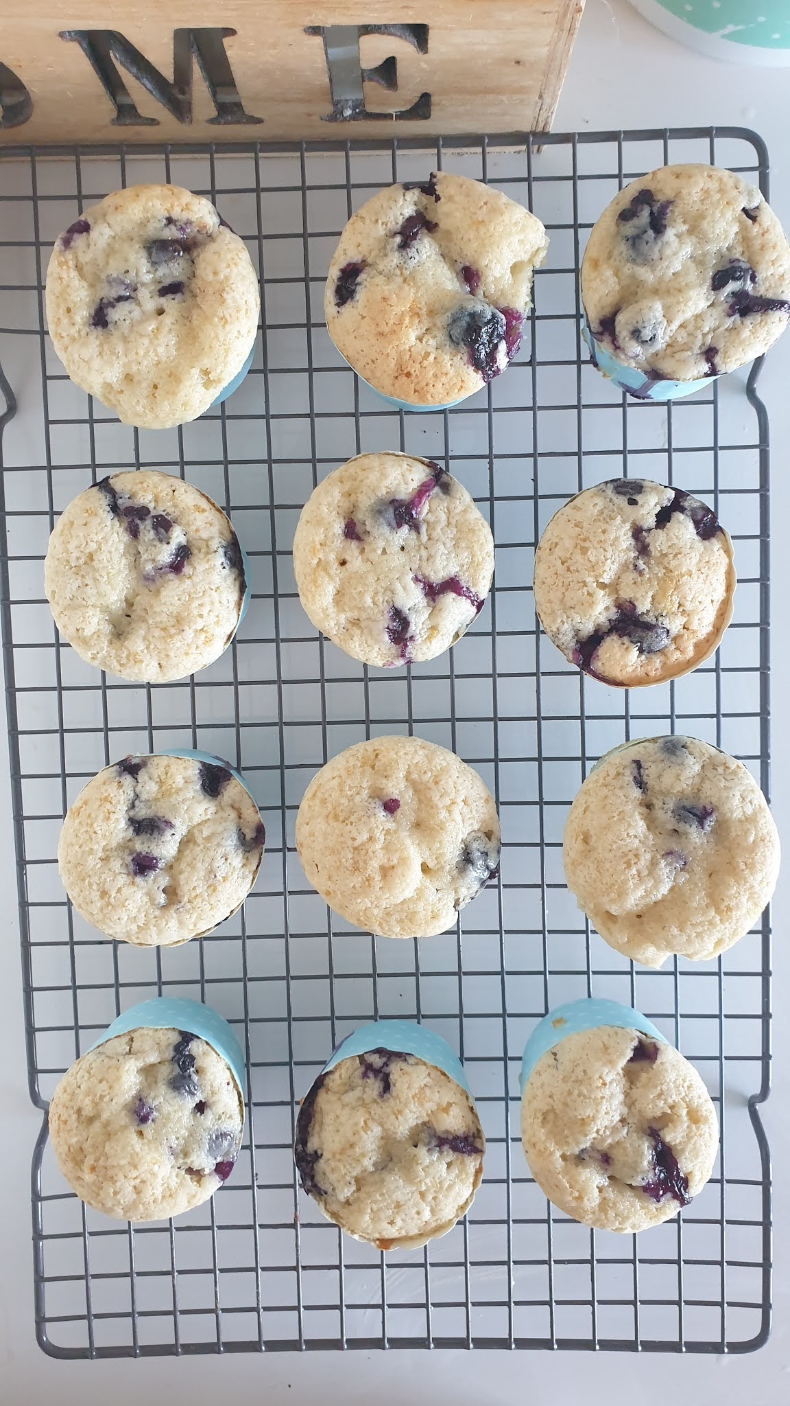 Por fim acrescente os mirtilos e envolva-os cuidadosamente à mão, com a ajuda de uma colher de pau.